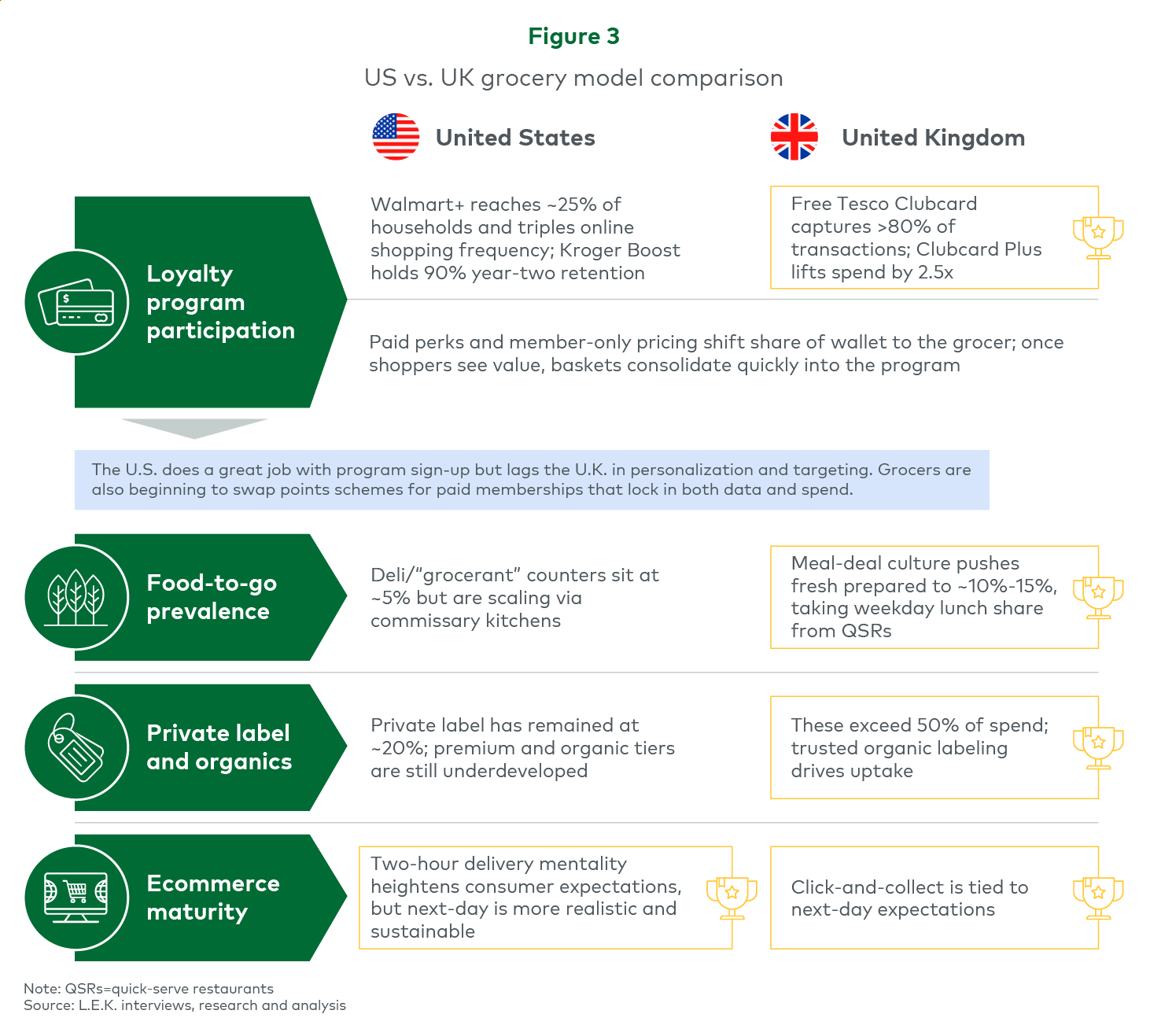A comparison of the largest market (U.S.) with the global grocery leader (U.K.) showcases clear growth areas for the U.S. (see Figure 3).
